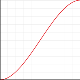 Result of equation is evaluated as y (depends on type of visualization: movement = vertical position from X to Y point; scaling = scale X and Y size from 0% to 100%; rotation = degress from 0° to 360°; alpha = opacity from 0% to 100%). Graph can show show y min. -1.0 and max. 2.0